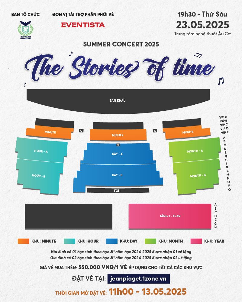 Mỗi khoảnh khắc trong 𝗦𝘂𝗺𝗺𝗲𝗿 𝗖𝗼𝗻𝗰𝗲𝗿𝘁: 𝗧𝗵𝗲 𝗦𝘁𝗼𝗿𝗶𝗲𝘀 𝗼𝗳 𝗧𝗶𝗺𝗲 sẽ viết nên những câu chuyện riêng của mỗi người trong cộng đồng và của Jean Piaget, là dấu ấn của sự trưởng thành, những niềm vui, trải nghiệm và bài học riêng đã tạo nên chúng ta của hôm nay và mai sau. Dòng chảy của ký ức, hiện tại và tương lai được lưu giữ qua những bước chân tiên phong, nụ cười và nỗ lực bền bỉ mỗi ngày.
